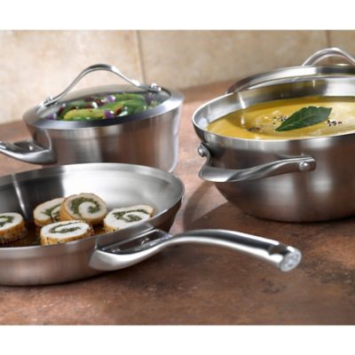 The Calphalon Contemporary Stainless Steel 13-pc. Cookware Set combines beautiful, contemporary style with premium performance. Made from two layers of heavy-gauge stainless steel surrounding a fast-heating aluminum core, each pan is also dishwasher safe. ... View Full Source